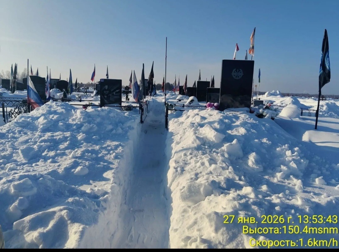 27 Января 2026Регулярная уборка снега на территориях городских кладбищ осуществляется на главных дорогах, подъездных путях и у административных зданий, обеспечивая свободный доступ к местам захоронений. Для уборки снега используется спецтехника, где есть необходимость, применяется ручной труд.